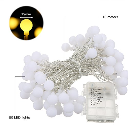 Tomshine ストリングライト led 80球 イルミネーションライト10m 防水 リモコン付き 電池式 0.6W 防水 電球色 室内室外 (10m ボール型)
