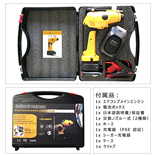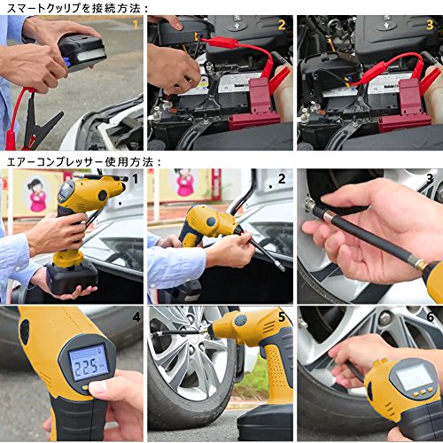 エアーコンプレッサー 2500MA電池とクリップ付き、エンジンをつける機能、日本向けの高品質プロエアーポンプ緊急モバイルに使用可能 自動車 自転車 バイク ボール空気入れ