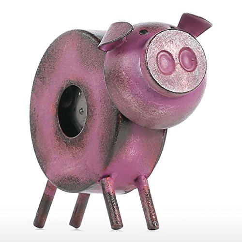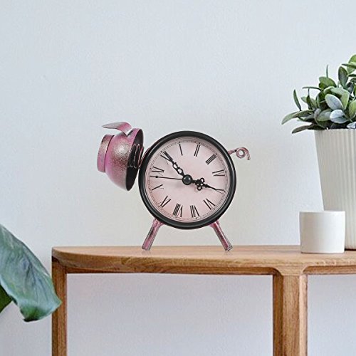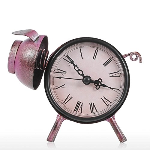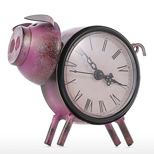 Tooarts ピギークロック 手作り ヴィンテー ジメタル キャット 置物 ミュートテーブルクロック 実用時計 単三電池