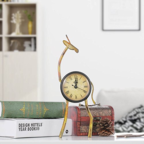 Tooarts ディアクロック 手作り ヴィンテー ジメタル ディア 置物 ミュートテーブルクロック