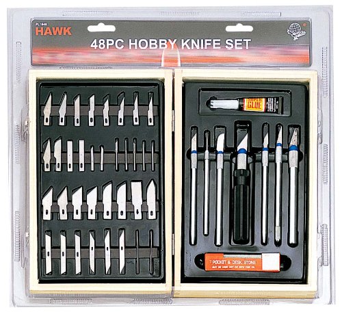 48 pc趣味ナイフセット(ストレートエッジ、Slant、カーブ、ピンブレード、パンチ/ Awl、卒業など) in木製ボックス11 " x 7 " x 2 "