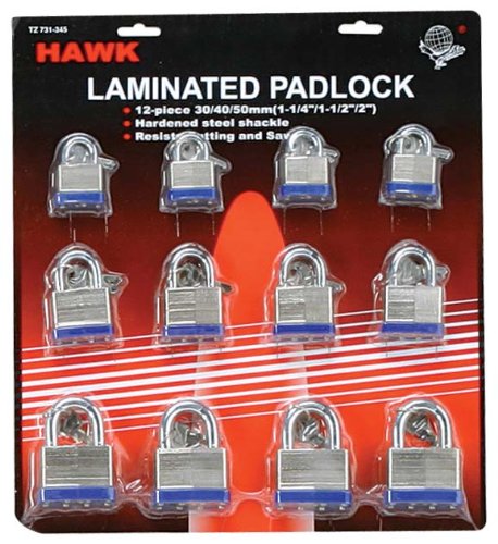 ToolUSA 30 / 40 / 50 mmラミネートゲート南京錠12-pieceセット: lock-73134