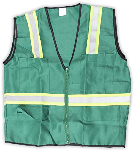 Forest Green Safety Vest With Neon Yellow And Silver Reflective Stripes-Size Medium by ToolUSA