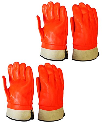 - Men's Size Extra Large Orange PVC Work Gloves with Fleece Lining and Gauntlet Cuff : ( Pack of 2 Pairs )