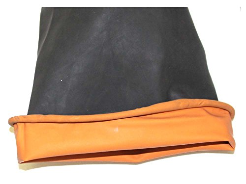 - 14 Inch, Rolled Cuff Rubber Gloves With Orange Lining , And Black Crinkle Finish
