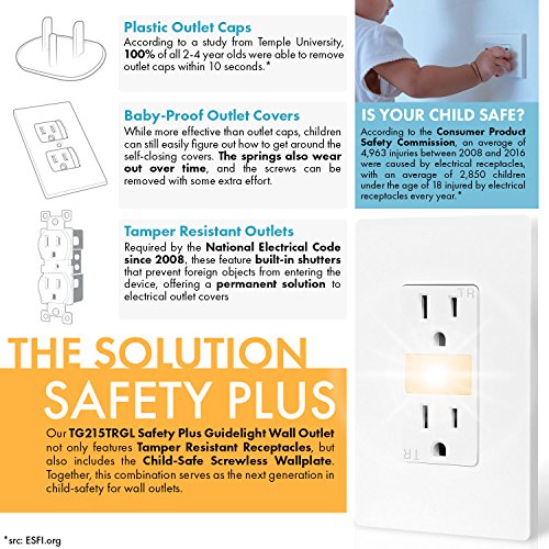 1つの極tg215trglはDecoratorガイドライトコンセント、最も安全なコンセントとなるようにしましょう。伸縮性のある2つのコンセントのナショナル電気コード(nec)準拠の改ざん防止シャッターと組み込まれていて、ガイドライトで構成されています。guidelightはを経由してナビゲーションを支援する薄暗い明かり廊下と階段を簡単に見つけられます。自動センサーを検出する光の量でも、部屋を正確に、そのオンされていないときは、LEDガイドライト部屋のライトを選択していないときのレベルが3.0ルーメンまで下がる場合に部屋のおおよその光の量を、太陽は下のドロップしてします。LEDの出力は低速、ぼんやりしている、ホワイトライトでの容易な目に、明るいがまだ十分にわざわざが、邪魔をしている。のguidelightsは子供のベッドルームのほかに、寄宿舎に便利を提供しているのは、薄暗い明かりが明るくなりすぎないことですが。インストールされている場合に付属のScrewless壁コンセントプレート、child-proofプロジェクト、)。Screwlessカバーのアクセスを壁プレートからの子を保持し、ネジと簡単に取り外しができなくなります。アウトレット」で保護する場合はテストされた安全シャッターが表示される異物挿入できません。最適な安全性、インストールで複数のguidelights廊下、階段。topgreenerこのバックアップコンセントコンセントと壁プレート1年間のメーカー保証が付いています。