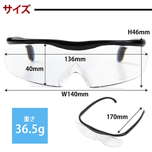 - 拡大倍率:1.8倍 サイズ:約W140mm×H46mm フレームの長さ:170mm 重さ:約36.5g