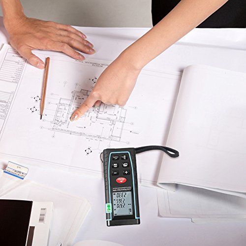 - 【多種測定】距離/面積/体積・容積/ピタゴラス(辺測定)/連続測定という作業に応じて選べる5種類の測定モードがあり、測定値の加算、減算機能もついて、非常に便利です。測定基準:本体前端/本体後端。離れた場所から対象物に可視レーザーの光を当てて、ボタンを押すだけで、簡単・正確に距離、面積、容積などを測定します。