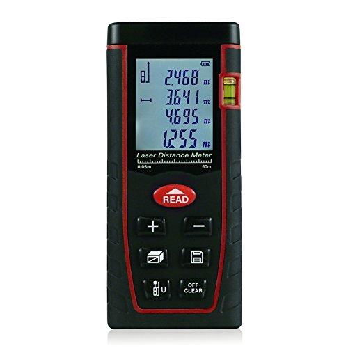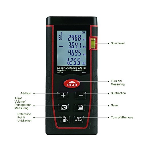 レーザー距離計 TopOne 最大測定距離60m 携帯型 距離/面積/体積ピタゴラス 自動計算 連続計測可能 高い測定精度±2mm LCDデジタル表示 バックライト搭載 IP54防塵 防水性能 日本語説明書付 (60m)
