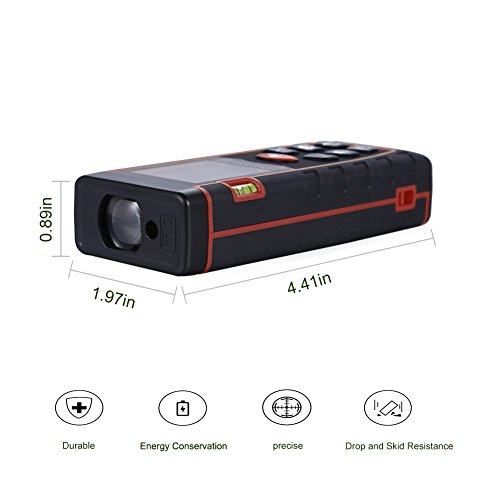 1、高精度で広い測定範囲でき、1ボタン操作で距離、面積&体積の瞬時に測定でき、多機能のレーザー距離計です。その他に、データストア/リコール/データ消去機能が付きます。