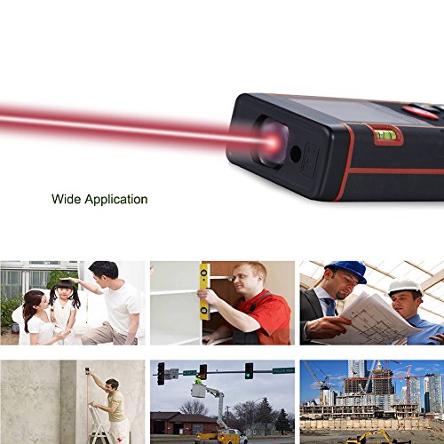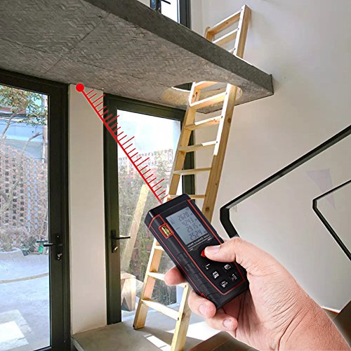 - 【多種測定】距離/面積/体積・容積/ピタゴラス(辺測定)/連続測定という作業に応じて選べる5種類の測定モードがあり、測定値の加算、減算機能もついて、非常に便利です。測定基準:本体前端/本体後端。離れた場所から対象物に可視レーザーの光を当てて、ボタンを押すだけで、簡単・正確に距離、面積、容積などを測定します。