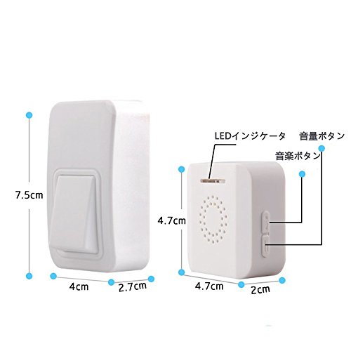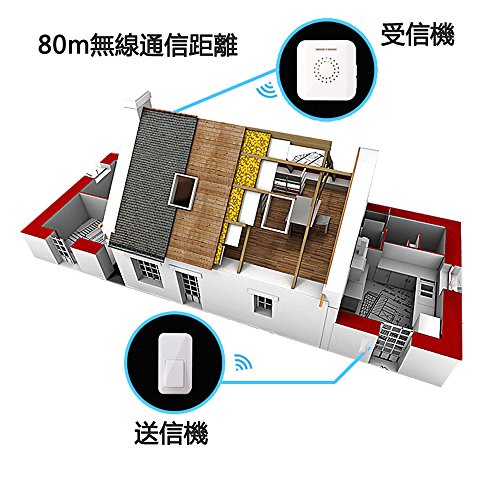 - 受信機:80dBまでの大音量、3階段調整可能、38種類のチャイム音が選択可能で多種多様の環境と要求を満たす。