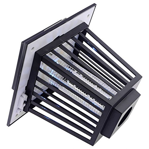 - 照明モードと殺虫モードに切り替え可能: 照明モードは、お庭を明るく照らしてくれ、殺虫モードは、青い光で虫を誘導し撃退してくれます。ライトの内側の網に電気が流れており、虫が網にふれると感電して撃退します。
