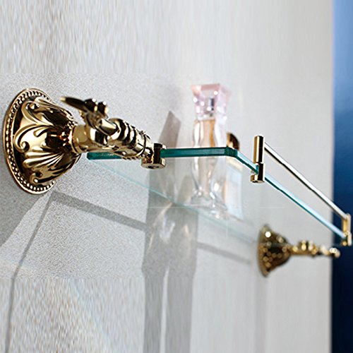 Tophome 化粧棚 ガラス棚 化粧品収納ラック バスルーム棚 真鍮製 ホテル バス用 浴室棚 シェルフ 浴室収納 バスアクセサリー Ti-PVD