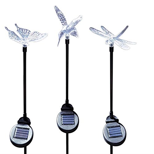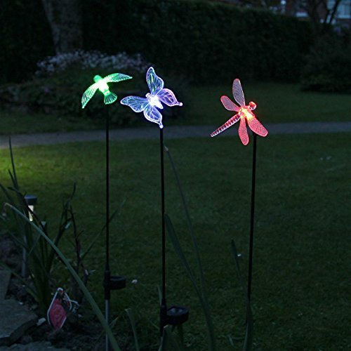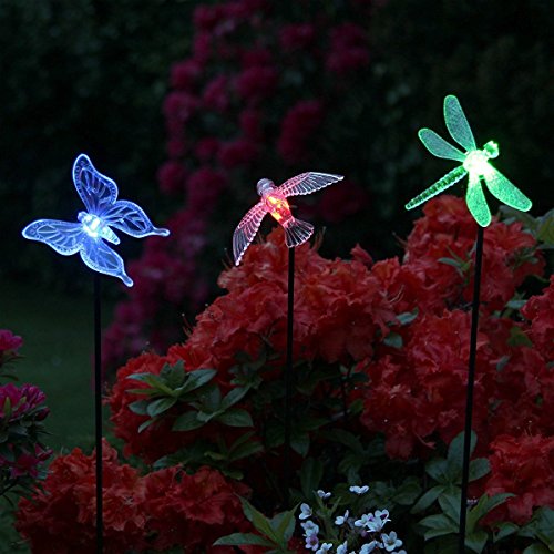Topjoy ガーデンライト LEDライト 飾り用 RGB変換 ソーラー充電 自動点灯/消灯 電源不要 プール/芝生/花壇 (3本セット(飛び鳥/トンボ/チョウ))