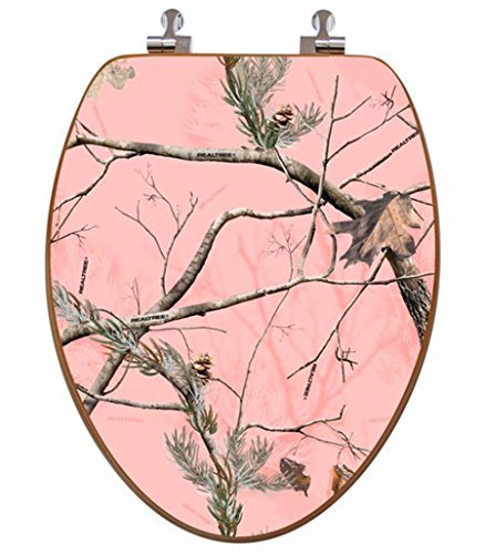 Topseat 3d Uplandシリーズ細長いトイレシートW / Chromedメタルヒンジ、木製、Realtreeピンク迷彩