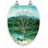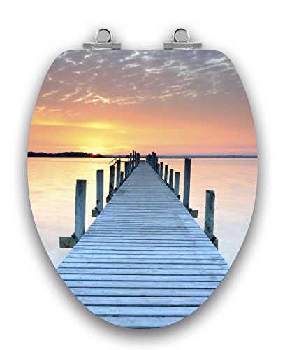 TOPSEAT Art of Acryl 長形 トイレシート 低速閉鎖クローム丁番付き 木製 睡蓮