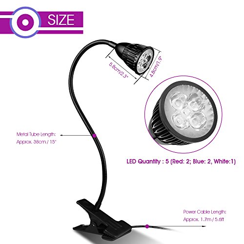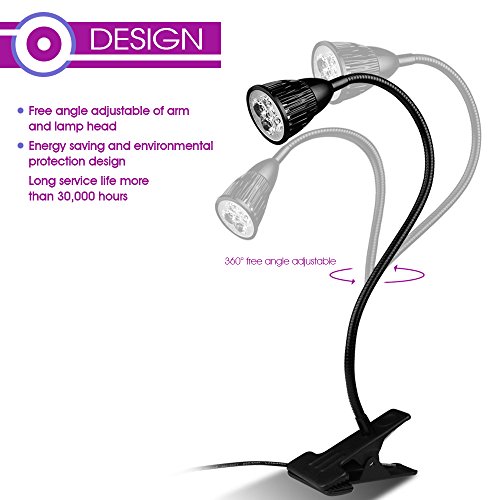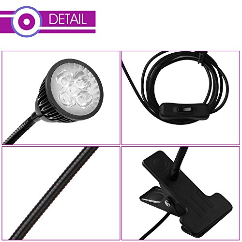 ALLOMN LED水耕栽培ランプ 室内用植物育成LEDライト クリップライト フレキシブルアーム 低消費電力省エネ 水槽照明 観葉植物 園芸 30000時間使用 5W ブラック
