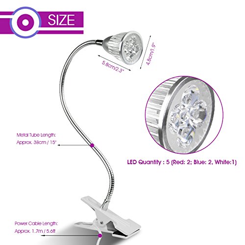 ALLOMN LED水耕栽培ランプ 室内用植物育成LEDライト クリップライト フレキシブルアーム 低消費電力省エネ 水槽照明 観葉植物 園芸 30000時間使用 5W シルバー