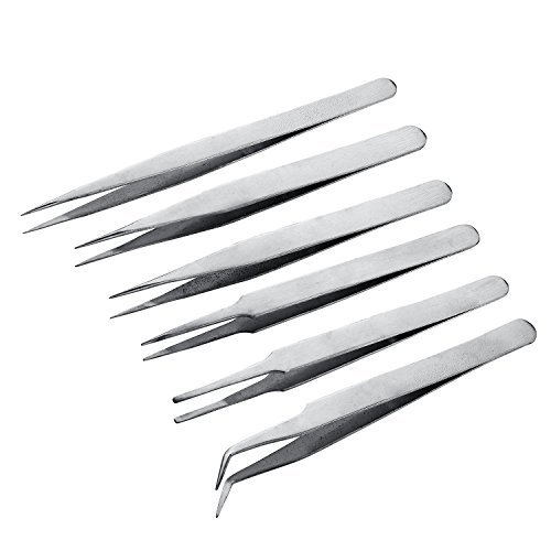 TotaLohan ピンセット 6本入り(ストレート&先丸&先曲がり)収納袋付き ツイーザー ステンレス