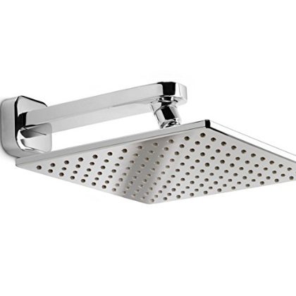 Color:Chrome Maximum flow rate of 2.5 gpm (9.5 lpm). 9' X 9' single spray plated showerhead. New slimline design. Rubber nozzles to prevent limescale build up. Includes shower arm and escutcheon. 1/2' NPT Connection.