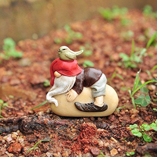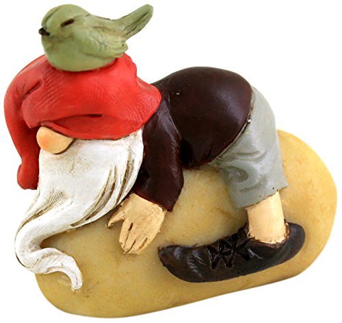 Top Collection Miniature Fairy Garden and Terrarium Napping Garden Gnome on Stone with Cute Bird [並行輸入品]
