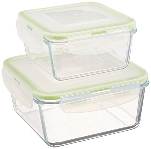 Uniware 2 Pc Square Microwave/oven Safe Air Tight Glass Food Storage 500ml and 1000ml [B4202-2] [並行輸入品]