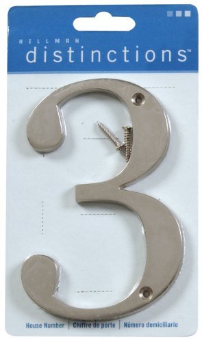 Distinctions by Hillman 843323 4-Inch Brushed Nickel Flush-Mount House Number 3 [並行輸入品]