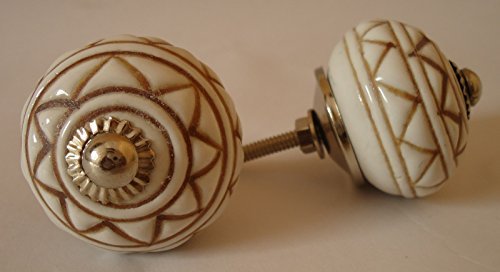 Vintage Look Lot of 2 Zoya's Colorfull Hand Carved Ceramic Knobs Handmade Ceramic Door Knobs Kitchen Cabinet Drawer Pull Kid's Badroom Knobs by Zoya's (Mystic014) [並行輸入品]
