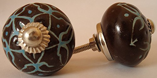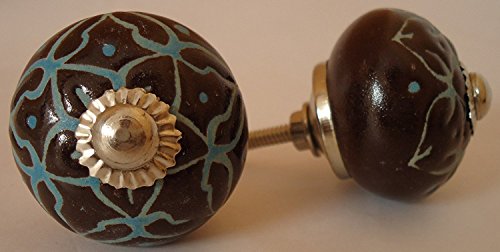 Vintage Look Lot of 2 Zoya's Colorfull Hand Carved Ceramic Knobs Handmade Ceramic Door Knobs Kitchen Cabinet Drawer Pull Kid's Badroom Knobs by Zoya's (Mystic006) [並行輸入品]
