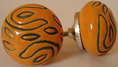 Vintage Look Lot of 2 Zoya's Colorfull Hand Carved Ceramic Knobs Handmade Ceramic Door Knobs Kitchen Cabinet Drawer Pull Kid's Badroom Knobs by Zoya's (Mystic001) [並行輸入品]