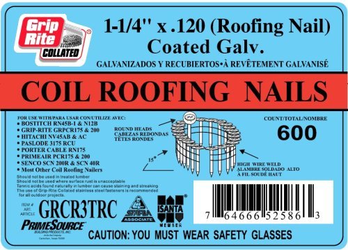 Grip-Rite 1-1/4-Inch 15? Electro-GALVANIZED Coil Roofing Nails Smooth Shank 600 nails per tub [並行輸入品]