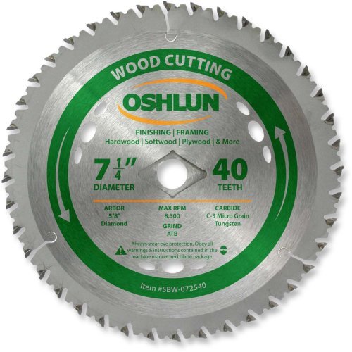 Oshlun SBW-072540 7-1/4-Inch 40 Tooth ATB Finishing and Framing Saw Blade with 5/8-Inch Arbor (Diamond Knockout) [並行輸入品]