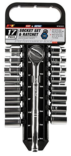 Performance Tool W38302 17 Piece 1/2 Drive SAE and Metric 6 Point Socket Set with Ratchet [並行輸入品]