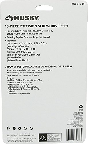 Husky 63518H Pocket-Sized Precision Screwdriver Set w/ Carrying Case (18 Pieces: 1 x Screwdriver Handle 17 x Hex Bits) [並行輸入品]
