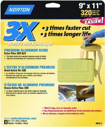 Norton 02613 3X Handy Aluminum-Oxide Sandpaper 320 Grit 9-Inch x 11-Inch 3-Pack [並行輸入品]