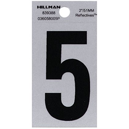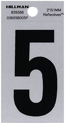 The Hillman Group 839388 2-Inch Black on Silver Reflective Square-Cut Mylar House Number 5 [並行輸入品]
