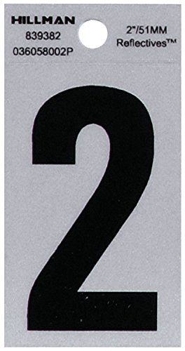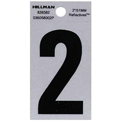 The Hillman Group 839382 2-Inch Black on Silver Reflective Square-Cut Mylar House Number 2 [並行輸入品]
