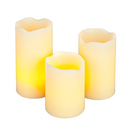 Everlasting Glow LED Wax Melted-Edge Pillar Candle Ivory Set of 3 3 x 4 5 6 [並行輸入品]