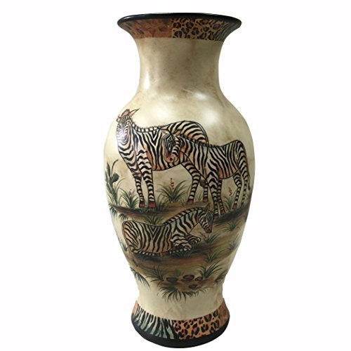 PMJC Hand Painted Zebra Oil Painting Porcelain Vase 4 by 3.75 by 10.5 [並行輸入品]