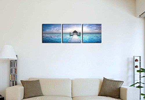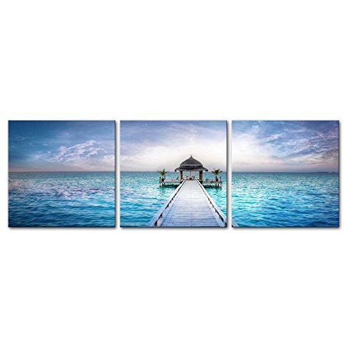 3 Pieces Modern Canvas Painting Wall Art The Picture For Home Decoration Awesome Dreamy Sunset Over The Jetty In The Indian Ocean Maldives Seascape House Print On Canvas Giclee Artwork For Wall Decor [並行輸入品]