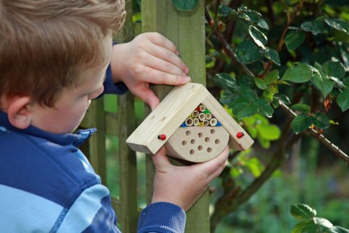 The Minibug bug box is a functioning wildlife habitat that Wildlife World has developed for children who have a growing interest in wildlife. The bug box is designed to be placed in the garden to attract ?beneficial insects?--insects that help to pollinate plants or protect them against pests--for studying and learning. Junior entomologists--and future conservationists--can learn all about insects by observing them in this habitat and completing the 16-page study and project book that comes with the box. As well as its educational benefits, the bug box also has a practical function because, by encouraging beneficial insects into the garden, it can help to keep pest insects under control and boost plant pollination. The attractive dual-chambered design of the Minibug bug box provides an overwintering habitat for natural aphid predators such as ladybirds, which can each eat more than 4000 aphids in their lifetime. During the spring and summer, the bug box becomes home for solitary bees--non-aggressive garden pollinators--and other beneficial insects. The bug box offers a variety of potential habitats--the top section can be filled with the provided sections of bamboo cane and plastic drinking straws or with other natural ?tubes?, such as dead plant stems, and the lower section is made from bored solid timber.