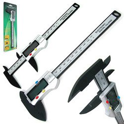 This digital caliper is excellent for the shop home work or school. Its large LCD display makes reading your measurements a snap. Carbon fiber composite construction is extremely durable. Display can be changed from inches millimeters or fractional inches with instant conversions. Its slide rule is also marked in inches and millimeters.Features include:Extra strong carbon fiber composites lightweight and durableBig LCD display for easy readingLow voltage warning by flashing displayMeasuring range: 0-150mm 0-6inchesResolution: 0.1mm 0.01 inchesRepeatability: 0.1mm 0.01 inchesMaximum measuring speed: 1.5m/sec 60 inches/secondMeasuring system: Non-contact linear CAP measuring systemDisplay: LCD display minus (-) sign 4 digits character and IN sign for inch measuringPower: One batter SR44LR44 1.5V (included) flashing display warns the end of its lifeIncludes retail packaging