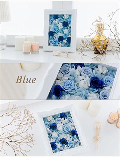 プリザーブドフラワー 高級 ボックスアレンジ ラッピング付き 4カラー (ブルー)