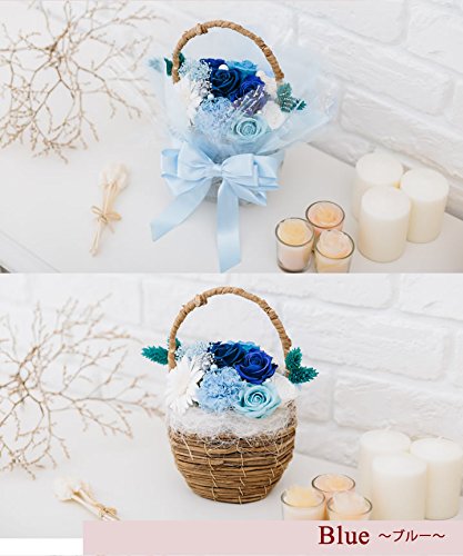 プリザーブドフラワー バスジケットアレンジ 豪華アレンジ ローズ ラッピング付き 4カラー (ブルー)