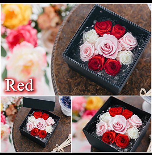 プリザーブドフラワー ボックスアレンジ シュシュ付きラッピング (レッド)