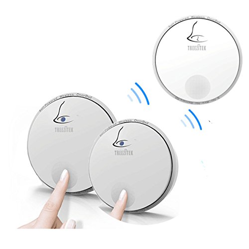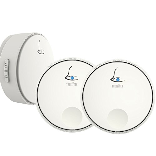 Treezitek ワイヤレスチャイム 電池不要 LEDライト 呼出音楽38曲 4段階音量調節 受信距離80M最高 無線呼び出しチャイム 防犯ドアベル (送信機2個 受信機1個)