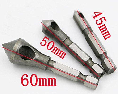 汎用 強靭 面取りカッター 3本セット 金属 プラスチック 加工 バリ取り 六角軸 差込角 6.35㎜