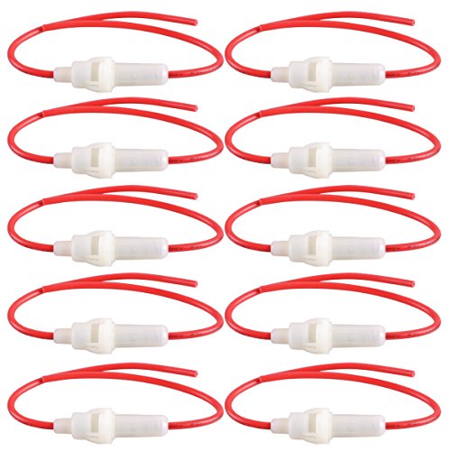 Tricolour 10pcsスクリュータイプ18AWGワイヤ、5×20mmインラインヒューズホルダ (白)