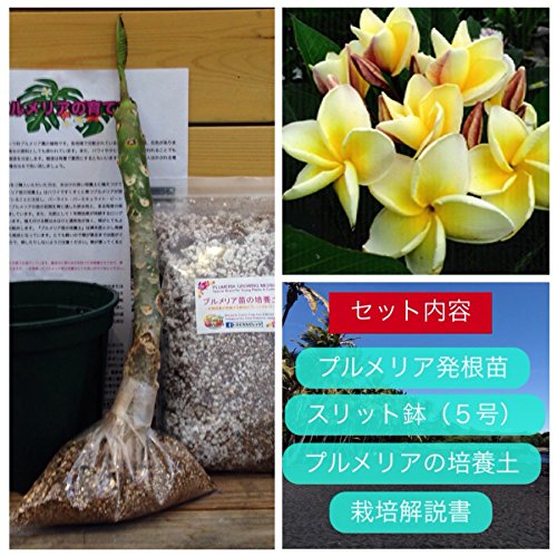 【希少なハイブリッド種】プルメリアのベアルート発根苗 ‘Moon Light'(大苗) 栽培セット【スリット鉢・プルメリア専用培養土・栽培説明書つき】